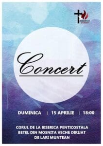 Corul de la Biserica Penticostală Betel din Moşnita Veche dirijat de Lari Muntean va fi duminică parte a unui program special de laudă şi închinare al Bisericii Penticostale Gosen din Timişoara.