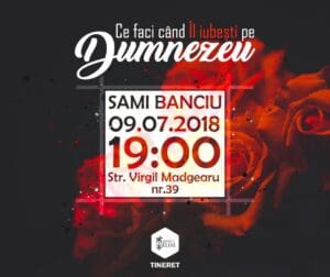 Biserica Penticostală Elim din Timişoara organizează luni 09 iulie 2018, de la ora 19:00 o seară de tineret cu tema: „Ce faci când Îl iubești pe Dumnezeu”. Vorbitor va fi fratele Sami Banciu. Adresa bisericii: str.Virgil Madgearu, nr 39.