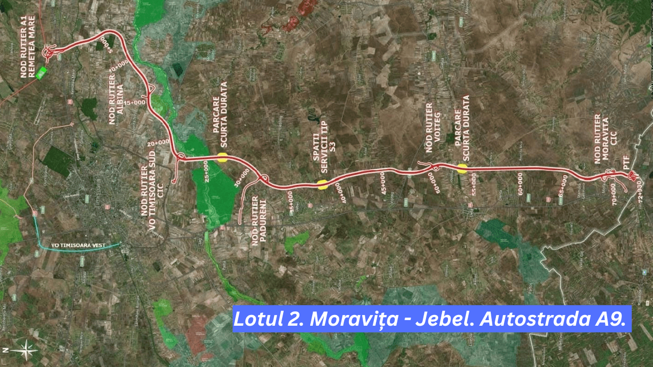 A fost desemnat câștigătorul contractului pentru Lotul 2 al Autostrăzii A9, între Jebel și Moravița, cu o lungime de peste 33 de kilometri. Constructorul este PORR Construct, care va avea la dispoziție aproape 3 miliarde de lei și 48 de luni pentru proiectare și execuție.